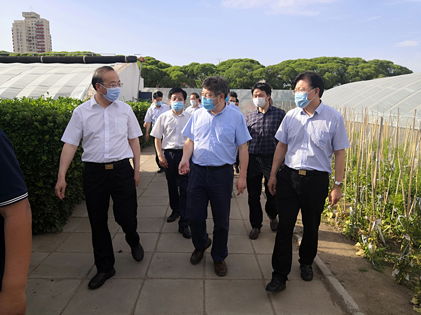 6月4日下午,安徽省滁州市市委书记张祥安一行到我所调研指导,参观所南区试验基地,考察蔬菜新品种选育推广、设施栽培技术等情况。中国农业科学院副院长刘现武、院成果转化局局长王述民、菠菜网站 所长张友军等陪同调研。