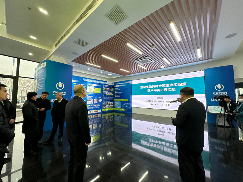 1月17日,农业农村部副部长张兴旺、科技司司长周云龙、市场与信息化司司长雷刘功一行调研蔬菜生物育种全国重点实验室平谷园区建设进展,中国农科院副院长刘现武、平谷区政府、蔬菜所主要负责同志陪同调研并座谈。